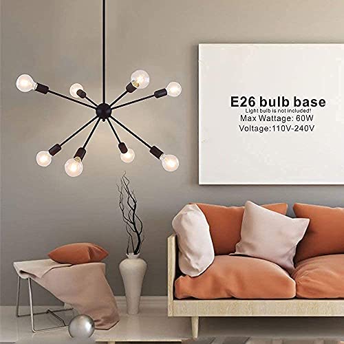 Professional reviews from industry experts Modern Sputnik Chandeliers Semi Flush Mount Pendant Light Industrial Vintage Ceiling Light Fixture for Bedroom Diningroom Living Room( Black-8Light)